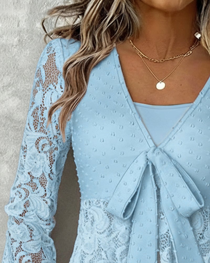 Effen Blouse Met Klokmouwen En V-Hals
